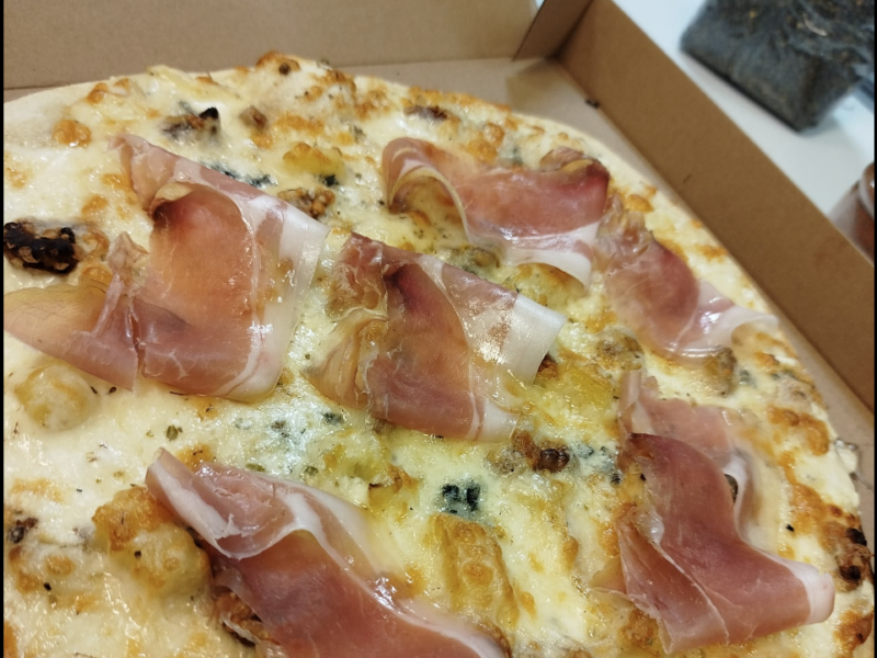 La jo’ 15.00€ La jo’ 15.00€Parmesan, Sauce Tomate, Fromage, Olive, Mozza, Pesto, Tomates Séchées Ettomates Fraîches, Jeunes Pousses, Coppa,